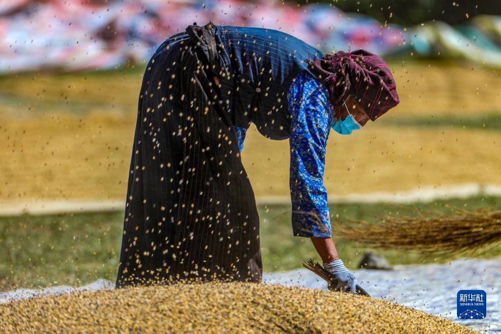 第五個中國農(nóng)民豐收節(jié)在即,西藏自治區(qū)拉薩市林周縣的田間地頭一片繁忙。據(jù)了解,林周縣目前累計糧食收獲面積為12.43萬畝,已收獲秋糧總產(chǎn)量預估6萬噸,豐收在望。