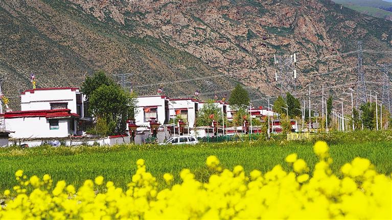 平坦的道路縱橫交錯,一棟新房連著一棟新房……行走在尼瑪江熱鄉(xiāng)羊日崗村,目光所及之處,盡是一幅幅和諧的優(yōu)美畫卷。