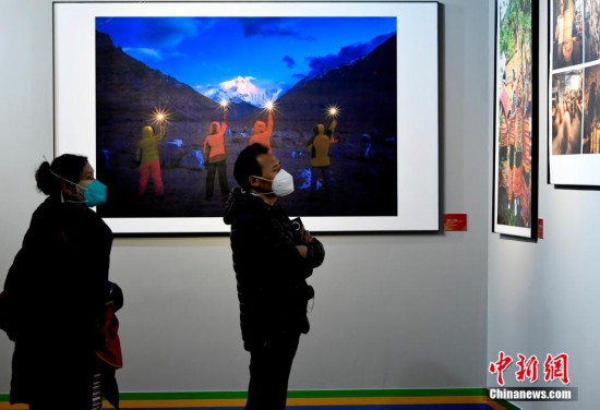 12月25日,第十五屆西藏珠穆朗瑪攝影大展在拉薩西藏牦牛博物館開幕。本次攝影大展共展出280件攝影作品,題材涉及人文、風(fēng)光等多個領(lǐng)域。創(chuàng)作手法涵蓋藝術(shù)、紀實、創(chuàng)意等諸多門類,作品風(fēng)格多樣、各具特色,彰顯了西藏地域文化特色。圖為觀眾正在欣賞展覽中的攝影作品。 李林 攝
