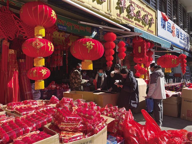 春節(jié)臨近,拉薩街頭巷尾年味兒漸濃,各個(gè)街道也比平時(shí)更加熱鬧。火紅的春聯(lián)、精致的福字貼畫(huà)、漂亮的燈籠和各種具有“兔元素”的飾品,無(wú)不在述說(shuō)著新春的到來(lái)。放眼望去,處處洋溢著喜慶祥和的節(jié)日氛圍。