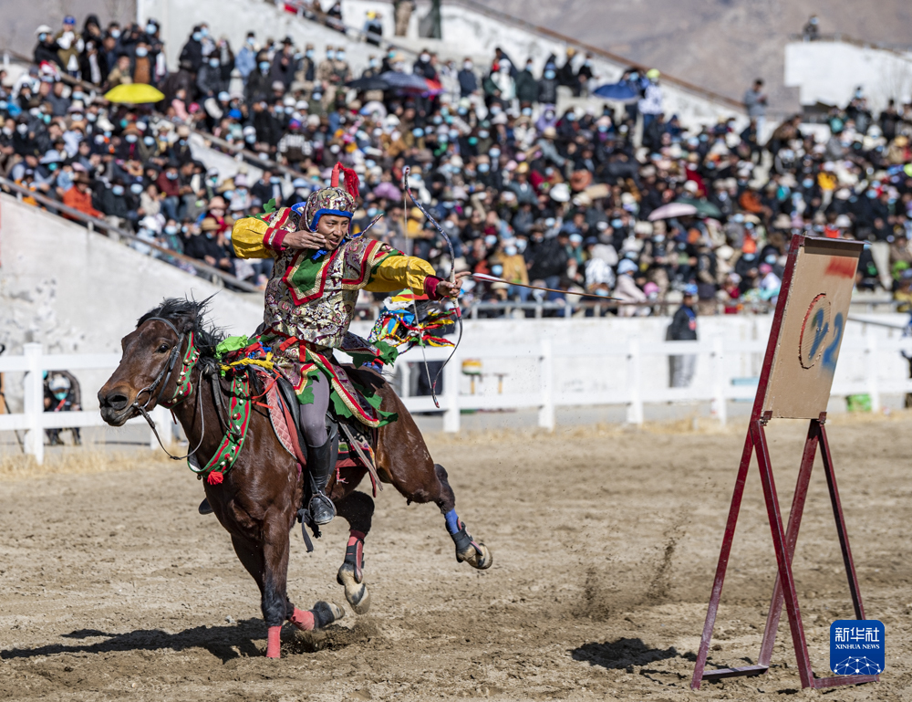 2月23日,騎手表演騎馬射箭。新華社記者 孫非 攝