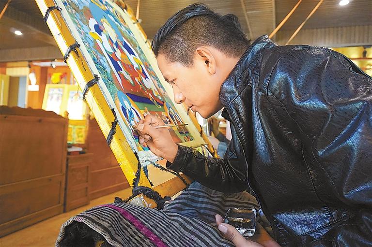 多年來,西藏在保護發(fā)揚唐卡藝術的同時,推動唐卡產(chǎn)業(yè)不斷做大做強,讓其從文化“遺產(chǎn)”變?yōu)樵鍪铡柏敭a(chǎn)”。