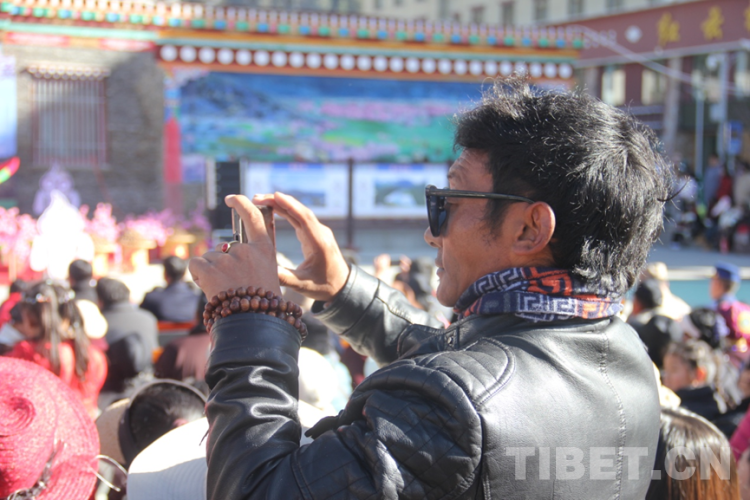 圖為開幕式現(xiàn)場市民在直播 攝影:次旦拉姆