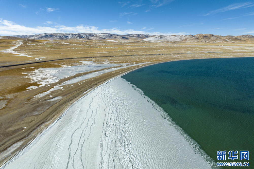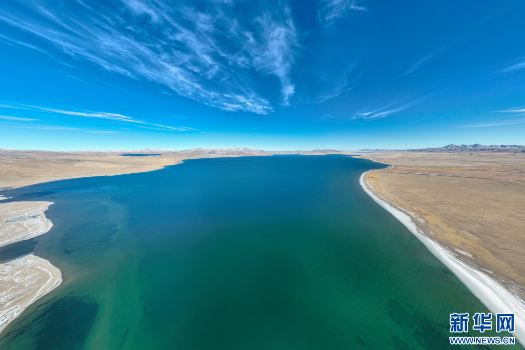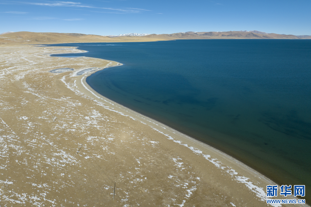 12月15日拍攝的蓬錯(cuò)湖邊(無人機(jī)照片)。新華網(wǎng) 旦增努布 攝