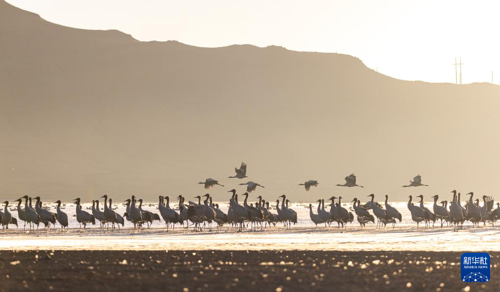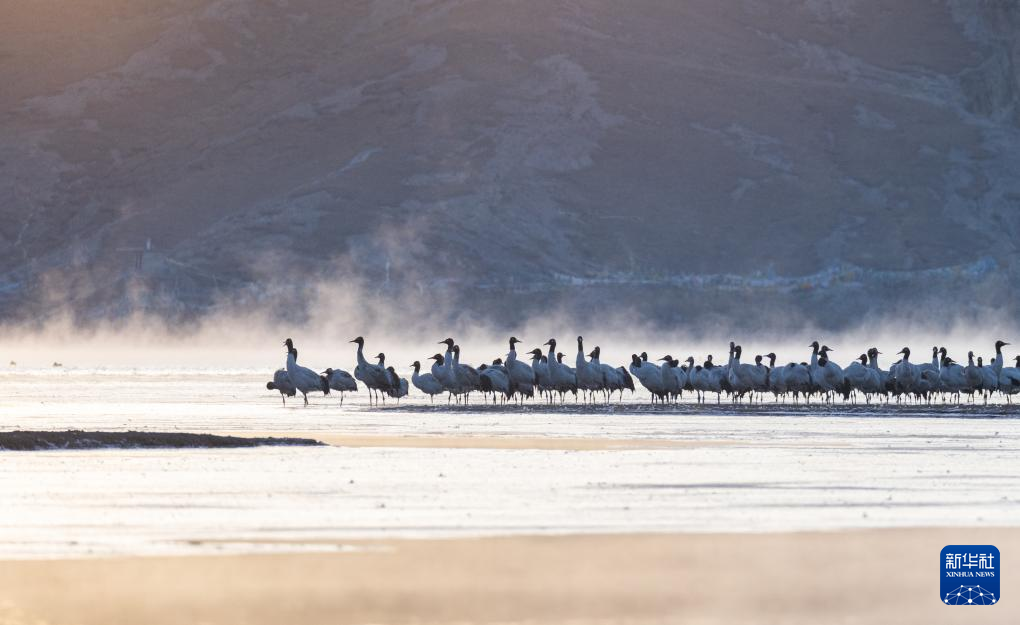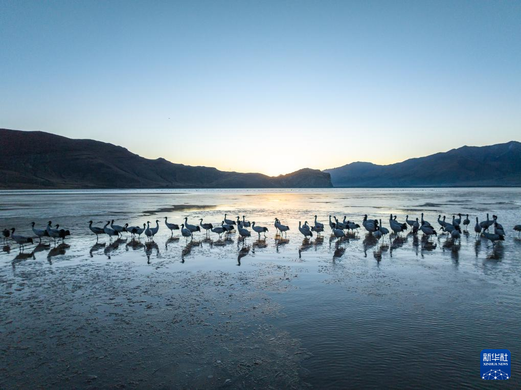 拉薩北部的林周縣平均海拔約4200米,是黑頸鶴的主要越冬地之一。清晨的陽(yáng)光灑在林周縣虎頭山水庫(kù),水面波光粼粼,鶴影婀娜多姿。