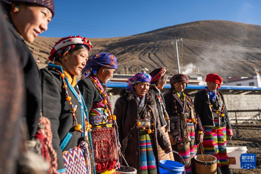 1月13日,時(shí)值西藏日喀則一帶傳統(tǒng)的農(nóng)家新年大年初二。坐落于群山間的日喀則市白朗縣東喜鄉(xiāng)思古龍村,延續(xù)傳統(tǒng)習(xí)俗,舉行擠牛奶、擲牛角等傳統(tǒng)文體比賽和翻桶接力賽等娛樂(lè)活動(dòng),以此慶祝新年。