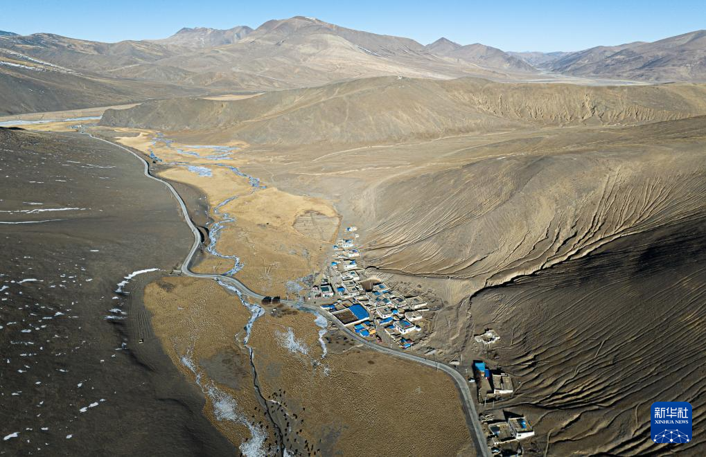 坐落于群山間的日喀則市白朗縣東喜鄉(xiāng)思古龍村(1月13日攝,無(wú)人機(jī)照片)。新華社發(fā)(丁增尼達(dá) 攝)
