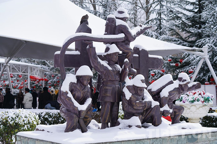圖為雪中的西藏和平解放紀(jì)念碑 攝影:趙振宇