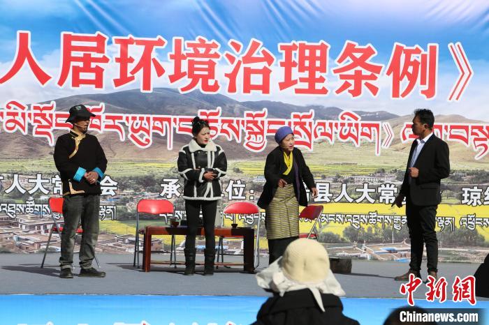 圖為瓊結(jié)縣藝術(shù)團正在表演關(guān)于人居環(huán)境治理方面的小品。次旦卓嘎 攝