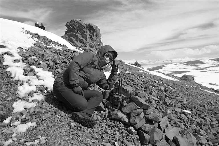圖為姜楠在野外安裝紅外相機(jī)。圖由姜楠提供