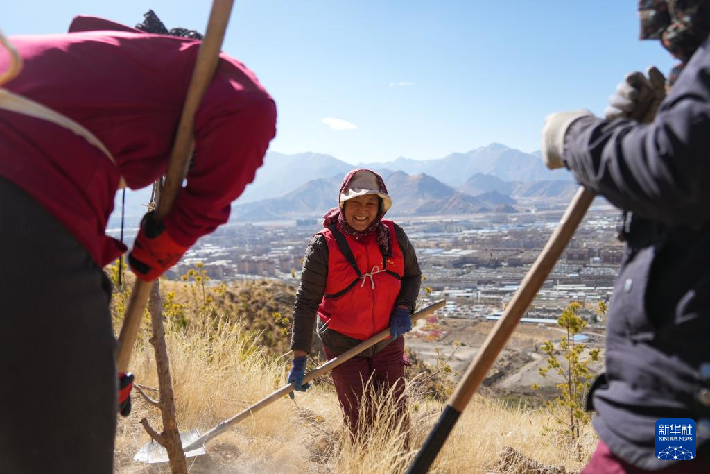 3月12日,東嘎社區(qū)二組村民在植樹(shù)。新華社記者 丁增尼達(dá) 攝 ??