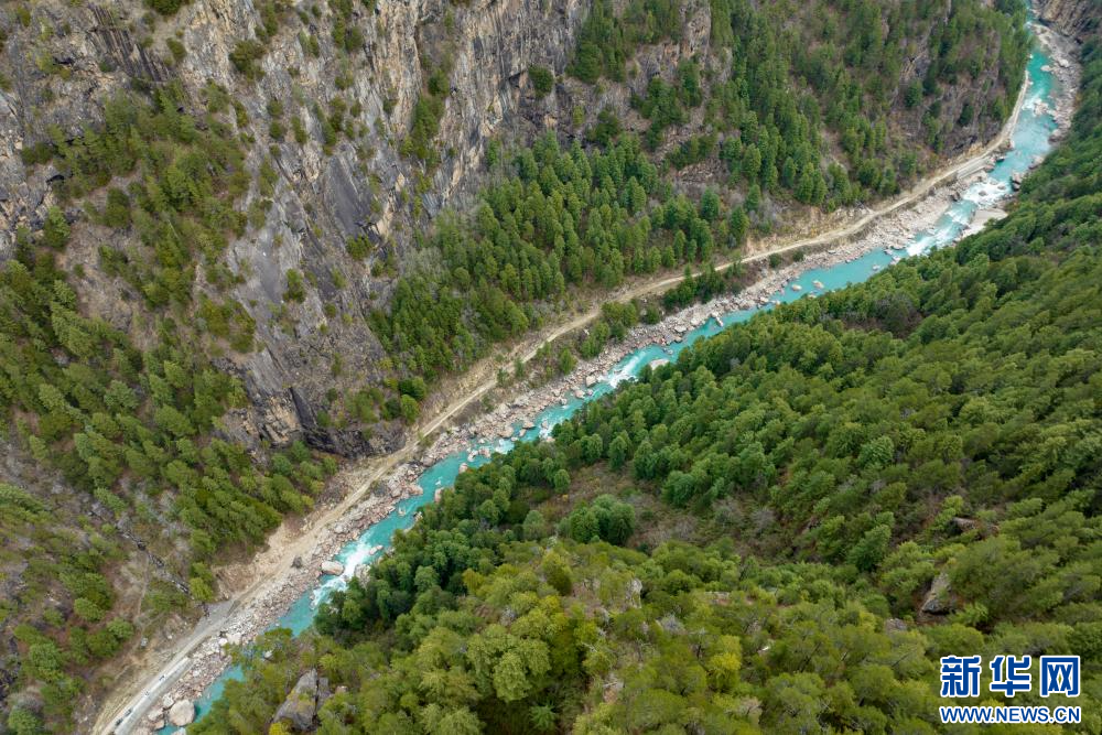 4月5日,在嘉黎縣境內(nèi)拍攝的“水磨巖”峽谷景觀(無人機(jī)照片)。 新華網(wǎng) 旦增努布 攝