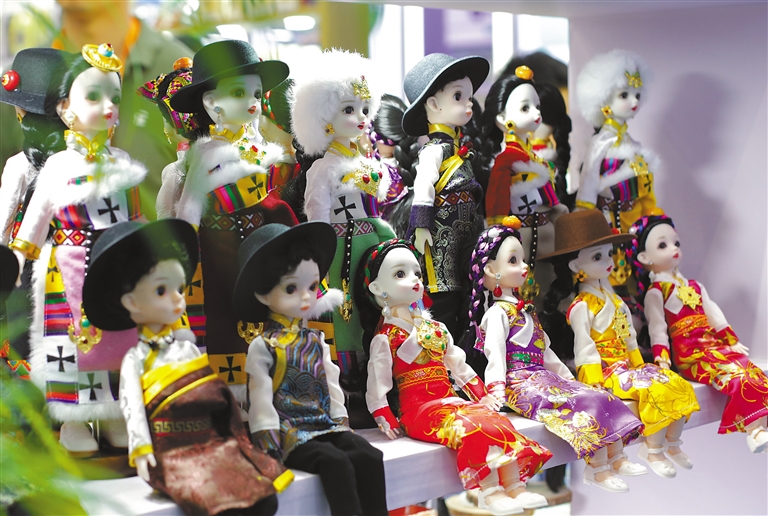 在國貨特色潮品展區(qū)西藏展臺拍攝的人偶。新華社記者 田薇薇 攝