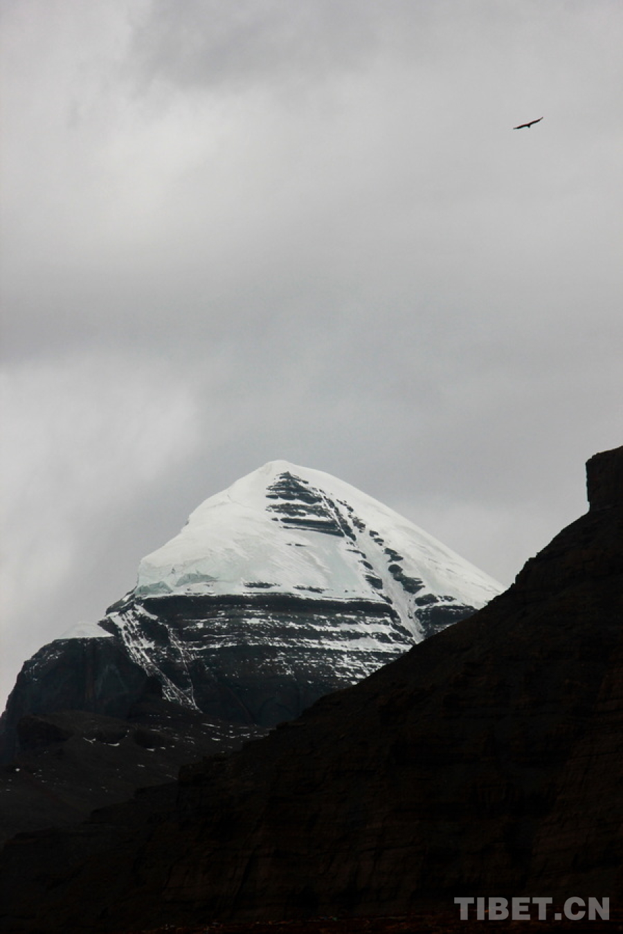 圖為雄鷹飛過位于西藏自治區(qū)阿里地區(qū)普蘭縣巴嘎鄉(xiāng)的岡仁波齊 攝影:劉莉