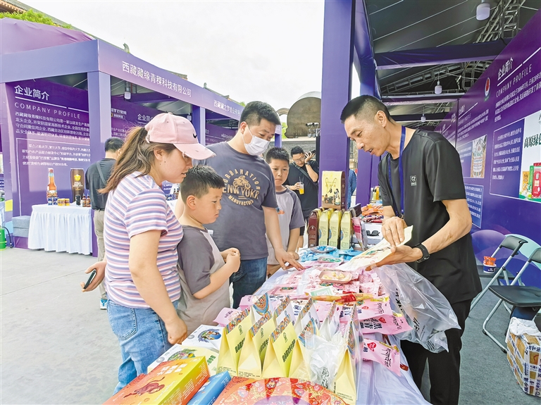 拉薩更桑商貿(mào)有限公司展臺上的藏紅花、牦牛奶干吸引著西安市民王先生一家的目光?!安丶t花可以活血化瘀、涼血解毒,還可以解郁安神和增強(qiáng)免疫力……”聽著導(dǎo)購員的介紹,王先生購買了幾十克藏紅花和十多包各種口味的牦牛奶干,“帶回去給親戚朋友,讓大家都嘗嘗西藏的美食。”