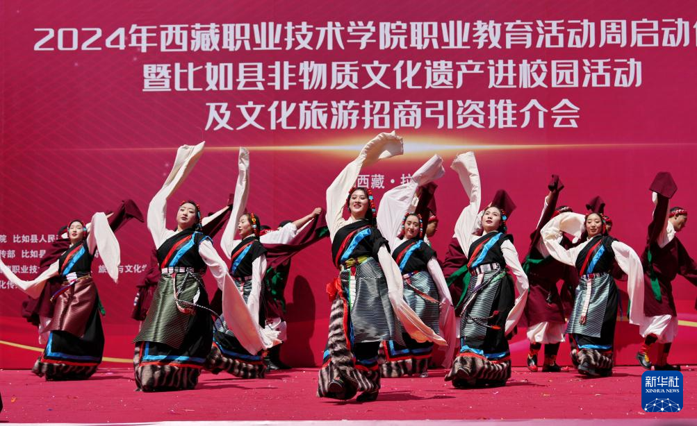 當(dāng)日,西藏職業(yè)技術(shù)學(xué)院職業(yè)教育活動(dòng)周在拉薩啟動(dòng),那曲市比如縣民族藝術(shù)團(tuán)非物質(zhì)文化遺產(chǎn)表演暨“鄉(xiāng)村振興 那曲奮進(jìn)”旅游推介走進(jìn)校園,激發(fā)人們對傳統(tǒng)文化和特色旅游的興趣?! ??