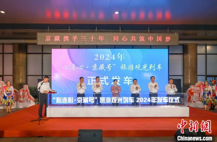 由文化和旅游部、國鐵集團(tuán)指導(dǎo),北京援藏指揮部、拉薩市城關(guān)區(qū)人民政府等單位組織的2024年“心連心·京藏號(hào)”旅游專列在北京西站首發(fā)。
