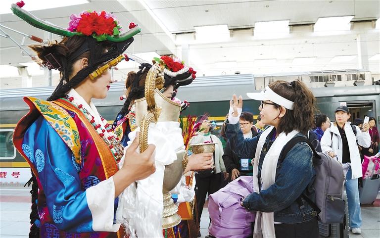 游客們走下列車,被眼前的一切深深吸引。他們有的拿出手機(jī),記錄下這難忘的瞬間,有的則沉浸在這歡樂的氛圍中,感受著京藏兩地的深厚情誼。