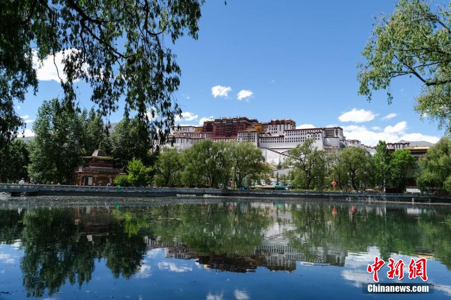 夏日拉薩布達拉宮倒影風光。