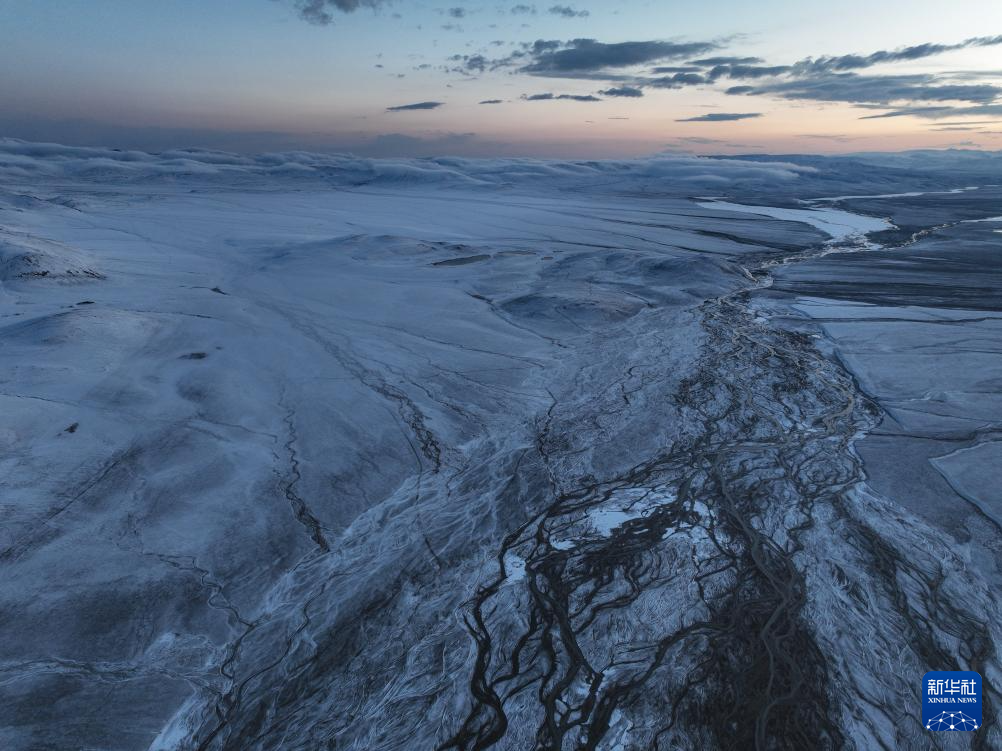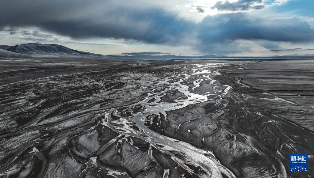 位于西藏羌塘國家級自然保護區(qū)內(nèi)的甜水河是藏羚羊遷徙產(chǎn)仔的重要通道。每年6月,會有眾多藏羚羊途經(jīng)此地??罩懈╊鹚雍哟仓Я髅懿?,景色壯美。