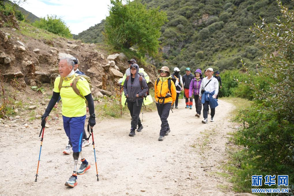 來自全國各地的戶外運(yùn)動愛好者在徒步活動中。新華社發(fā)