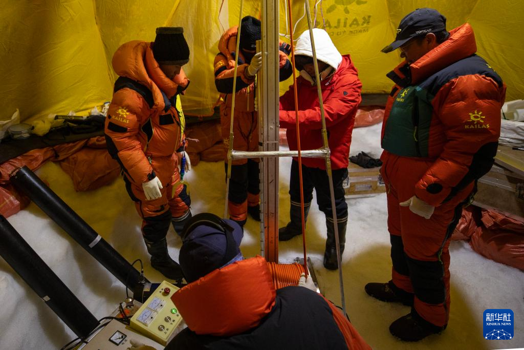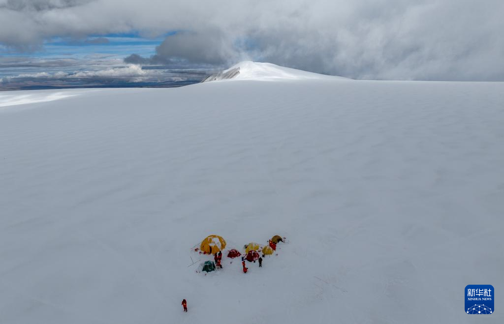 9月11日晚,由中國科學院青藏高原研究所副所長徐柏青研究員帶領的科考團隊在普若崗日冰原頂部海拔6100米的“Dome.C”點開機鉆取冰芯。