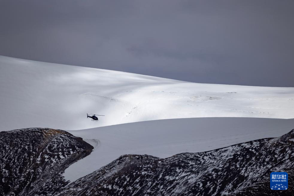 9月9日,直升機將科考物資從海拔5400米的第二次青藏科考普若崗日冰原大本營運往海拔6100米的“Dome.C”點。新華社記者 姜帆 攝 ??