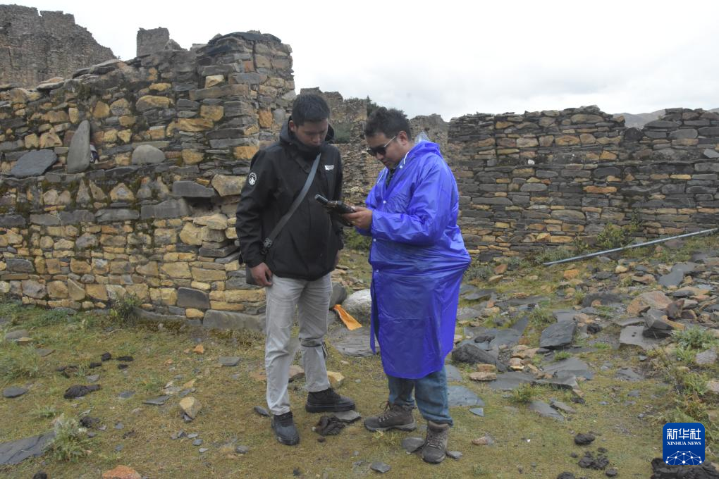 普查隊員正在采集和復核日喀則市桑珠孜區(qū)塔巴遺址本體邊界坐標及單體范圍。新華社記者 春拉 攝