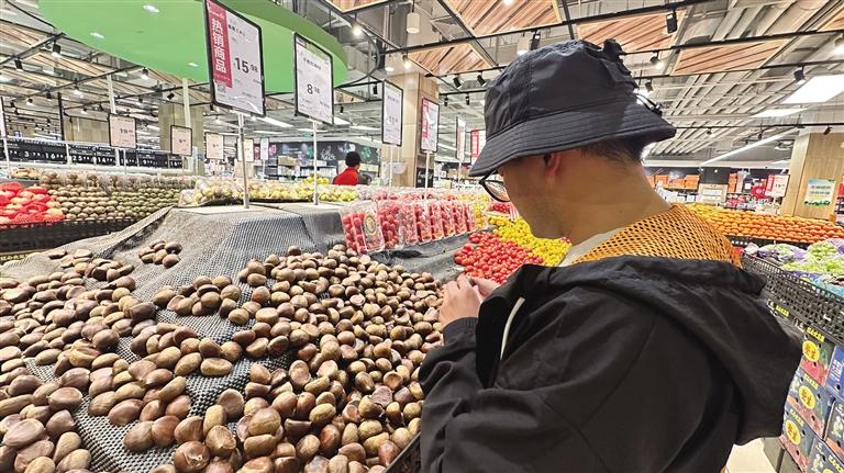 市民正在選購(gòu)新鮮板栗。