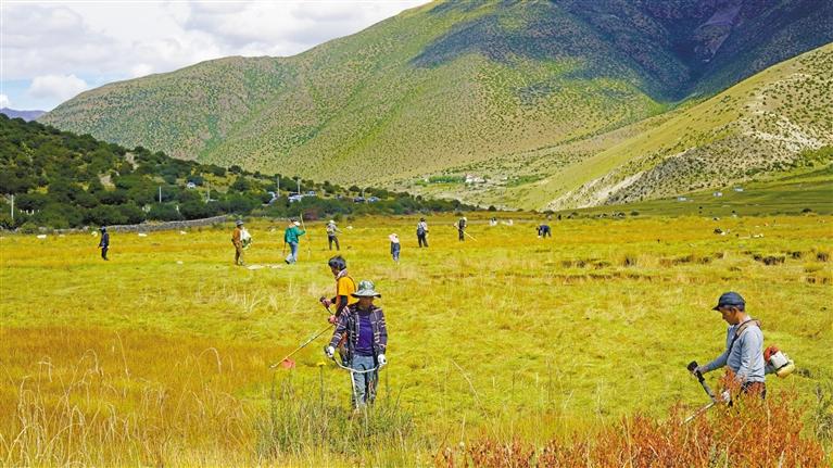 群眾在收割冬季飼草。