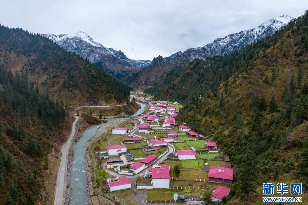 10月21日拍攝的“西藏解放第一村”昌都市江達(dá)縣崗?fù)写宕迕玻o人機(jī)照片)。新華網(wǎng) 旦增努布 攝