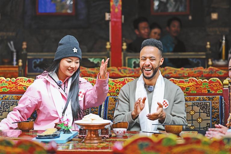 中央廣播電視總臺主持人苗霖、旅行博主朱大春與昌都音樂人巴鄧頓珠,在八宿縣縣委副書記、縣長德嘎旺姆的熱情款待下,不僅欣賞了精彩的熱巴舞,享用了當?shù)靥厣挛绮杓翱静叵阖i,還體驗了市級非遺蕎麥餅的制作過程。節(jié)目尾聲,苗霖贊唱的一首他為這一路昌都四個站的感受創(chuàng)作的歌曲《這里是昌都》,為此次行程畫上了圓滿的句號。