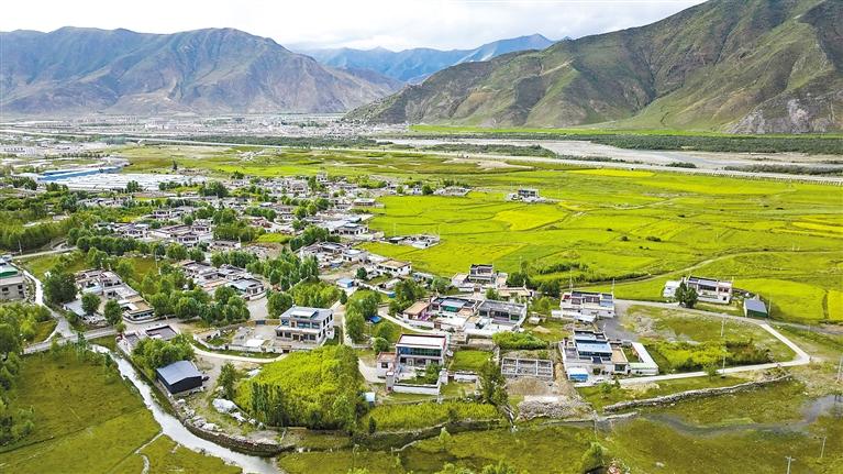圖為墨竹工卡縣塔巴村全新面貌(無人機照片)。 通訊員 洛克 攝