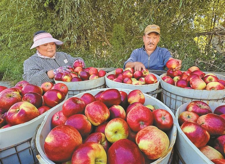 走進位于林芝市巴宜區(qū)與米林市交界處的林芝農(nóng)墾嘎瑪農(nóng)業(yè)有限公司蘋果種植基地,連片的果樹枝繁葉茂,紅彤彤的蘋果綴滿枝頭。得益于高原充足的日照、較大的晝夜溫差,以及清冽的雪山融水灌溉,這里的蘋果色澤鮮艷,口感脆甜多汁,深受消費者青睞?!?/p>