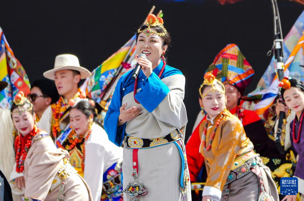 這是9月15日拍攝的開(kāi)幕式上的女聲獨(dú)唱《藏東明珠》。新華社記者 格桑朗杰 攝