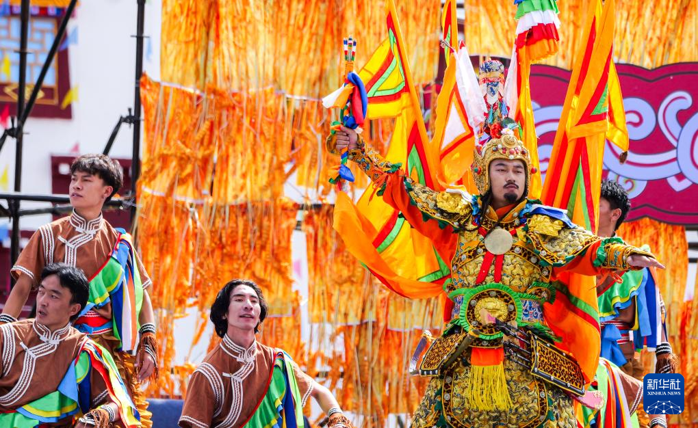 這是9月15日拍攝的開(kāi)幕式上的格薩爾王舞蹈表演。新華社記者 格桑朗杰 攝