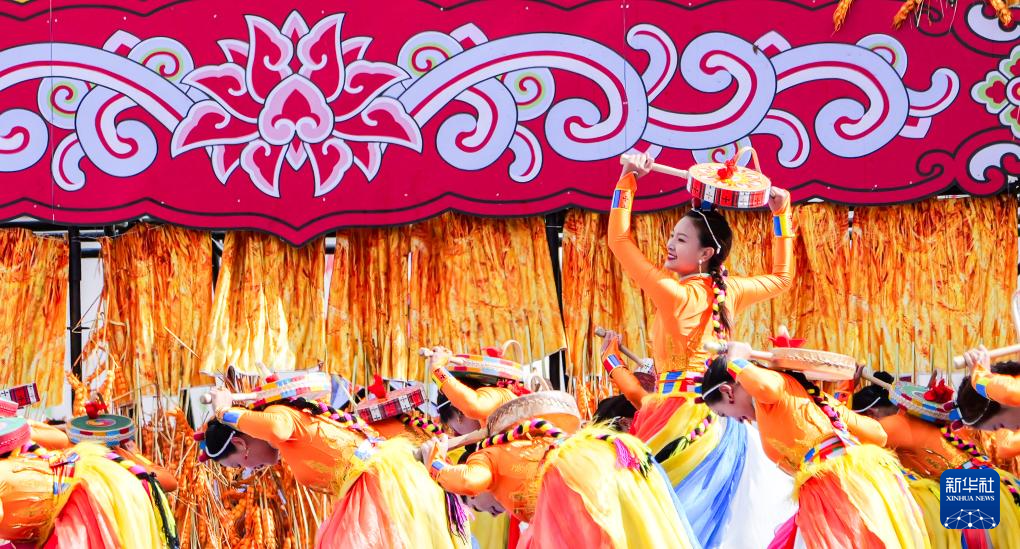 9月15日,演員在開(kāi)幕式上表演以糌粑為主題的女子群舞。新華社記者 黨黎 攝