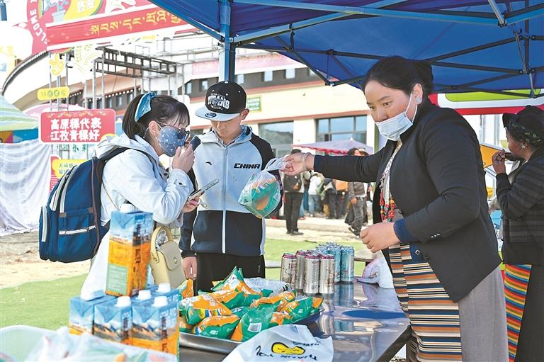 圖為在青稞美食匯展區(qū),顧客在購買青稞產(chǎn)品。