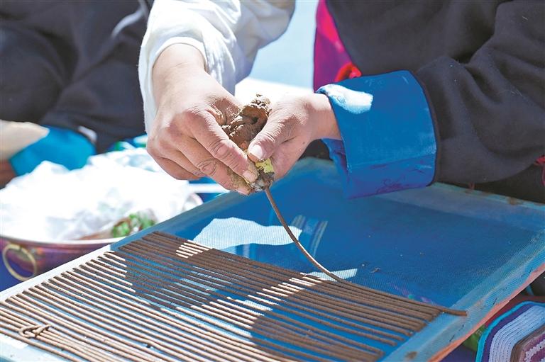 “今天我們帶來了6種藏香文創(chuàng)產(chǎn)品,分別有安神、提神、清潔空氣等系列,這些年我們除了在線下銷售,還要感謝尼木縣委、縣政府積極與線上各大平臺接洽,讓我們的藏香通過線上銷售,走出了尼木,讓北京、南京、天津等城市的客戶通過線上購買。所有藏香都是由縣委、縣政府組織的易地搬遷戶制作,這讓不少群眾不僅能就近就業(yè),還能照顧家里。特別感謝黨和政府對藏香保護(hù)和發(fā)展所做的各項(xiàng)工作?!笨h級非物質(zhì)文化遺產(chǎn)傳承人洛桑旺堆在活動現(xiàn)場說。