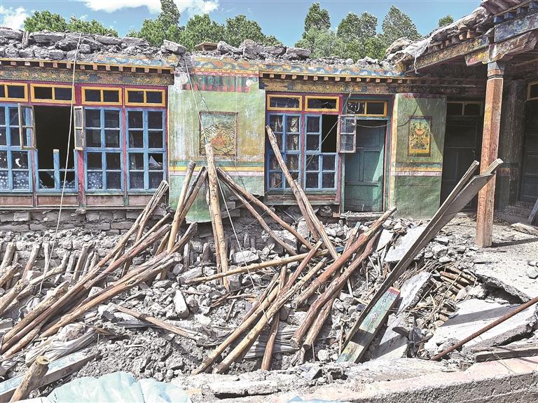 圖為索朗旺堆家已經(jīng)坍塌的老房子。 (圖片由受訪者提供)