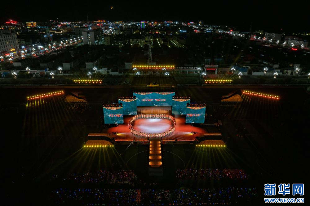 9月26日,第九屆象雄文化旅游節(jié)開幕式現(xiàn)場(chǎng)(無人機(jī)照片)。新華網(wǎng) 旦增努布 攝