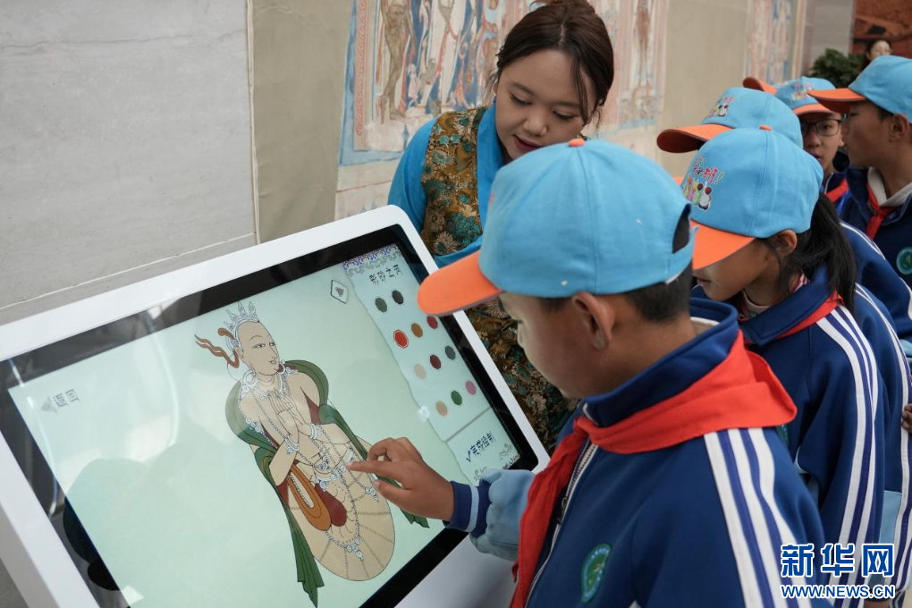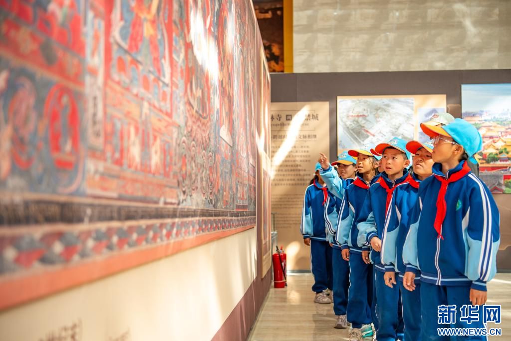 9月26日,學(xué)生在參觀“鐫刻高原 繪見古今”阿里巖畫與壁畫藝術(shù)特展。新華網(wǎng) 旦增努布攝