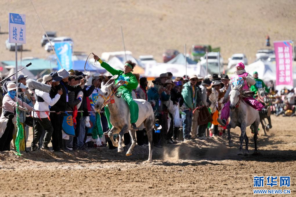 9月27日,選手在終點(diǎn)沖刺(無(wú)人機(jī)照片)。新華網(wǎng) 旦增努布攝