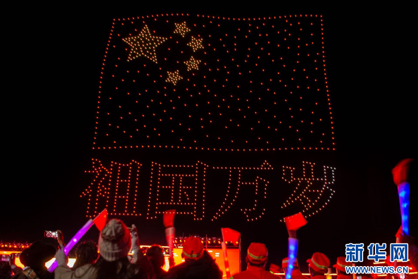 圖為第九屆象雄文化旅游節(jié)開幕式現(xiàn)場的無人機(jī)表演(9月26日攝)。新華網(wǎng) 柑丹鴦琦攝
