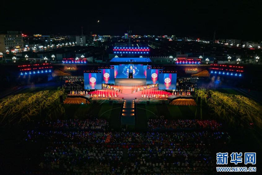 圖為第九屆象雄文化旅游節(jié)開幕式現(xiàn)場(無人機(jī)照片,9月26日攝)。新華網(wǎng) 旦增努布攝 ??