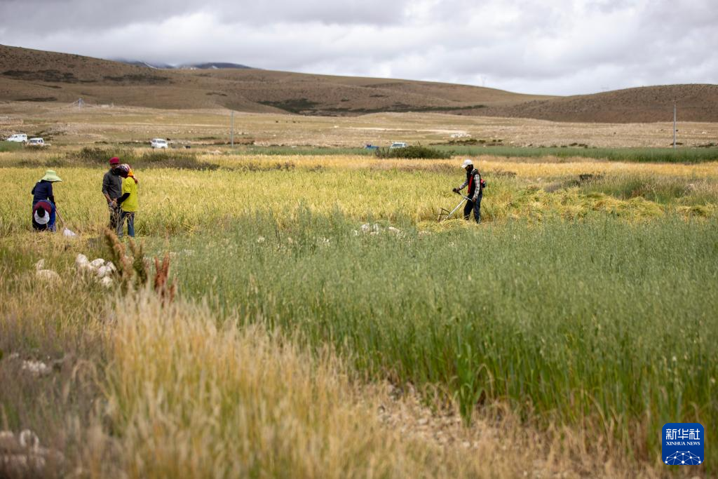 西藏當(dāng)雄縣羊八井鎮(zhèn)甲瑪村村民收割飼草,為牲畜越冬做準(zhǔn)備(9月16日攝)。新華社記者 姜帆 攝