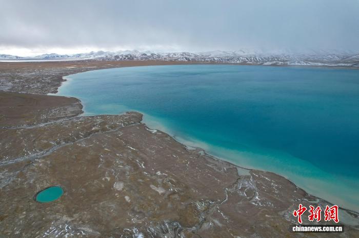 美馬錯(cuò)位于西藏自治區(qū)阿里地區(qū)日土縣與改則縣交界處,湖面海拔4920米,面積140.5平方公里。據(jù)悉,該湖地處昆侖山南麓。近日,中新網(wǎng)記者自駕新藏公路北線途經(jīng)該湖,航拍畫面顯示,湖泊呈帶狀鋪展,湖水自岸邊向中心顏色漸次加深,遠(yuǎn)處與天色交融成墨綠。周邊群山覆雪,湖泊、荒灘、雪山構(gòu)成一幅天地共繪高原藍(lán)的美麗景象。圖為10月9日,美馬錯(cuò)與遠(yuǎn)處的雪山。江飛波 攝