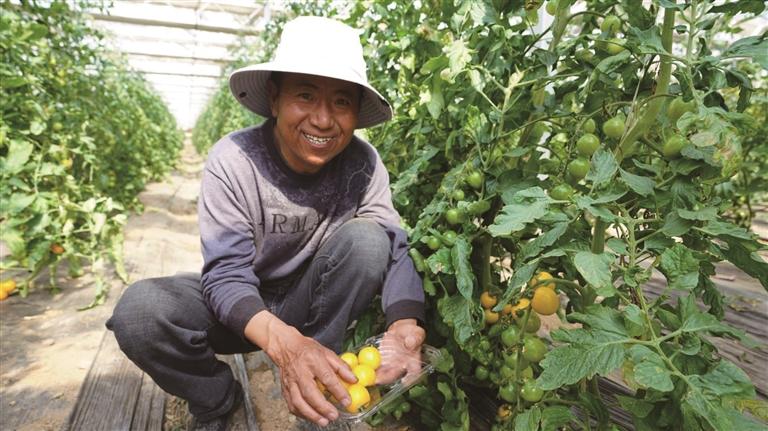 墨竹工卡縣塔巴村2組村民尼瑪正在大棚里照料四色圣女果?!霸谶@里工作每月平均能掙4200元,還能學(xué)到特色果蔬的種植技術(shù)?!彼χf。目前,園區(qū)每天提供固定崗位13個(gè),通過土地流轉(zhuǎn)、勞務(wù)用工等方式,已帶動(dòng)周邊54戶群眾增收。近年來(lái),墨竹工卡縣現(xiàn)代農(nóng)業(yè)產(chǎn)業(yè)園區(qū)累計(jì)向當(dāng)?shù)厝罕娭Ц锻恋亓鬓D(zhuǎn)費(fèi)625.33萬(wàn)元,實(shí)發(fā)勞務(wù)費(fèi)累計(jì)400萬(wàn)元。