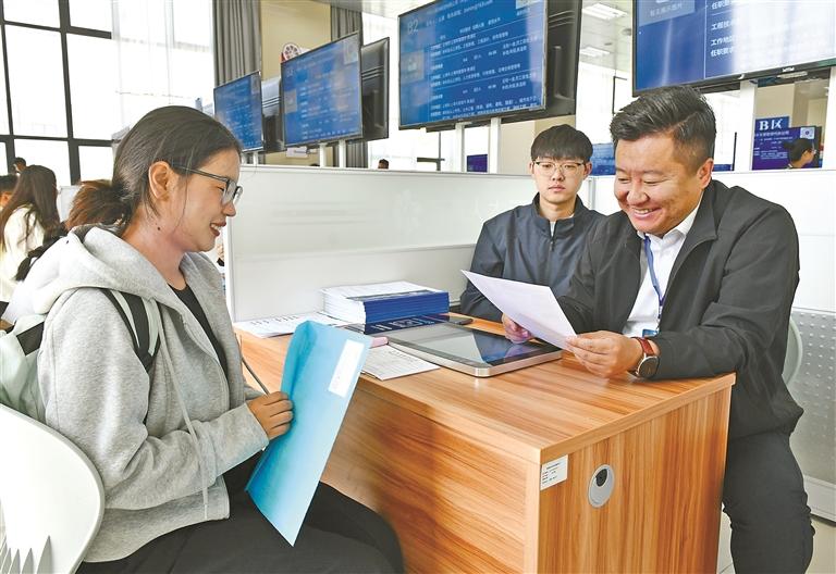 圖為自治區(qū)就業(yè)服務(wù)中心舉辦的2025年全民數(shù)字素養(yǎng)與技能提升專(zhuān)場(chǎng)招聘會(huì)上,求職者在面試。記者 旦增蘭澤 攝