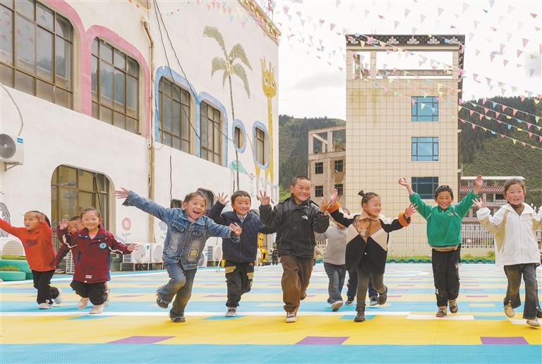 圖為昌都市類(lèi)烏齊縣重慶雙語(yǔ)幼兒園的孩子們?cè)谡n間快樂(lè)地玩耍。記者 丹增群培 攝 (資料圖片)